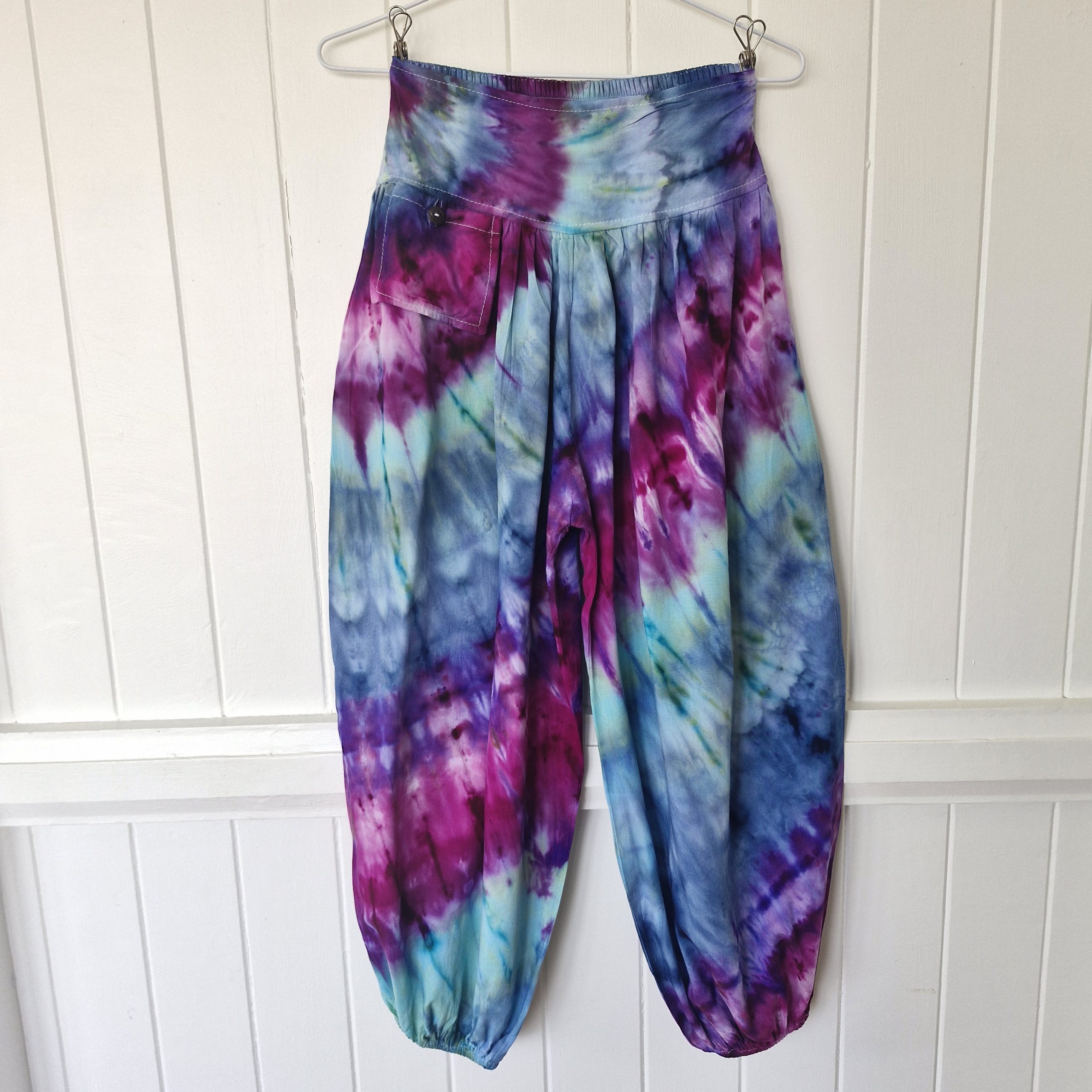 Hand dyed, Icy Magenta and Blues Tie Dye designed harem pant.